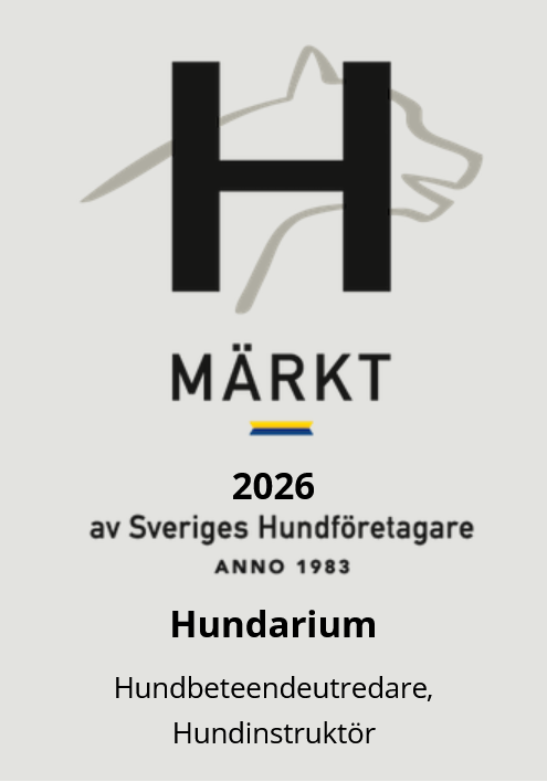 Hundarium är ett H-märkt företag av Sveriges Hundföretagare. Sveriges Hundföretagare är en branschorganisation för bland annat hundbeteendeutredare och instruktörer som arbetar med positiv träning, uppmuntran och belöning. Genom medlemskap i Sveriges Hundföretagare visar vi att vi tagit ett aktivt beslut att följa branschorganisationens policy. Sveriges Hundföretagare tar avstånd från strafftänkande och hårda tag. All träning baseras på kunskap och respekt för individens särdrag .